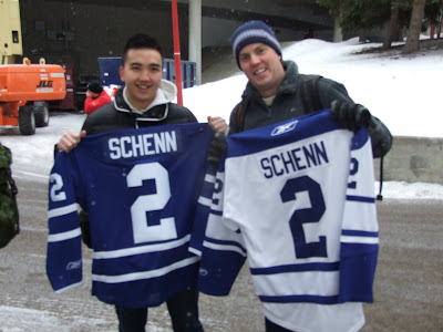 - The Rockets made a quick pit stop this morning at the Saddledome in Calgary to watch both the Leafs and Flames skate. The two teams face one another tonight obviously. It was a chance to touch base with Leafs d-man Luke Schenn who is as quality of an individual as you are going to find. 'Schenner' is living the life but doesn't forget those that he's met along the way. A good example was when I spoke with him this morning prior to the skate and inquired if we could meet for an interview. "Ya sure, just meet me in the Leafs dressing room after," Schenn told me. So I am watching Schenn during the pre-game skate up in the stands and when the session is over, he signals me to come down to the dressing room for the interview. He could have just skated off the ice which would have been enough of a cue for me to come down, but he gave me the old 'stick wave' on the ice and away I went to meet him. It just showed me again that 'Schenner' may be playing in the big league's but he is still the same player I grew to appreciate when he was cutting his teeth with the Rockets just a few years ago.